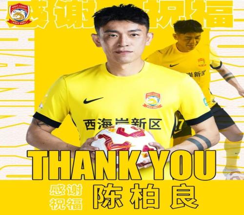 在官宣2名外援留队的同时,青岛西海岸还官宣了球员的离队。俱乐部发文称,经与陈柏良友好协商并达成一致,球员正式告别俱乐部。